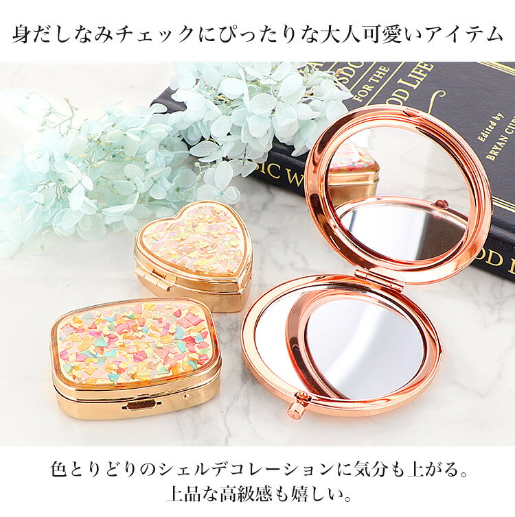 コンパクトミラー ミラー ミニ鏡 手鏡 拡大鏡 ピルケース 携帯 おしゃれ かわいい 丸 かわいい オシャレ 手作り ギフト プレゼント コンパクト 上品 貝殻 シェル