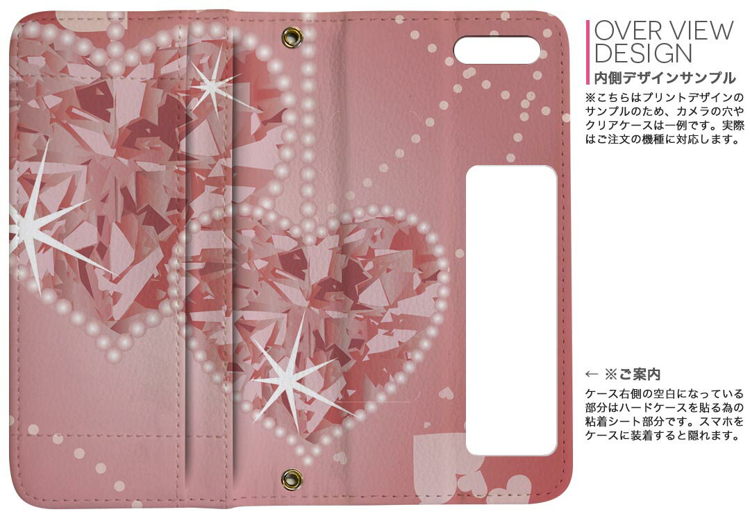 F-02L arrows Be3 アローズ ビースリー f02l docomo ドコモ 両面プリント 裏表 内側 内面 スマホ カバー レザー ケース 手帳タイプ フリップ ダイアリー 二つ折り 革 フルデザイン 005001 ハート 赤 ピンク 宝石