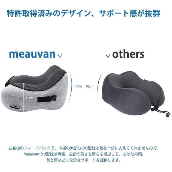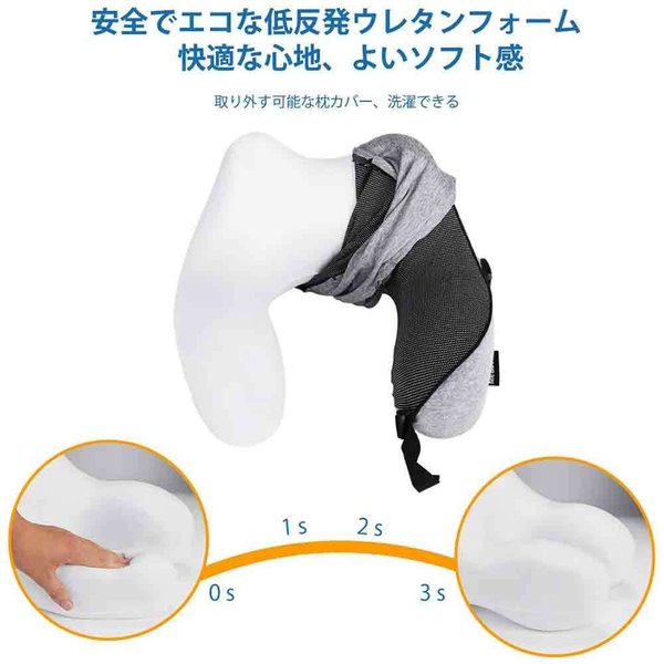 即納 ネックピロー ネッククッション U型 グレー 低反発 ネックスタンド まくら 昼寝 首枕 トラベル 旅行用 安眠 遮光 快眠 サポート