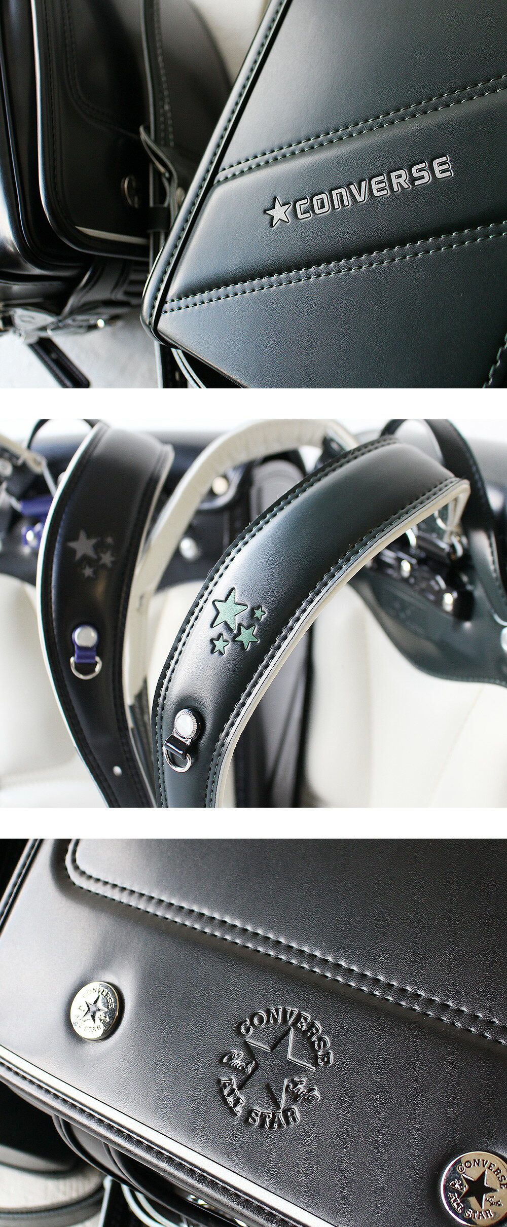 キッズアミ製品の魅力とこだわり ・デザイン性 ・お子様の負担を軽減する多くの機能 ・高品質にこだわった国内生産 …などのこれまでのテーマも もちろん大切に 新しい時代・電子教材に対応 お子様の 「Be Wonderful. (わくわくするこれから)」を コンバースでぜひお迎えください ■クラリーノエフ、クラリーノレミニカ(ブラックカーボン) ■大マチ内寸:約W23.5cm×H31.5cm×D13.5cm ■A4フラットファイル対応 ■約1,110g 備考 背あて ウィンディソフト 胴体(大マチ) 【強度をさらに向上】 ・パワフルガード ・A4フラットファイルサイズ対応 背カン ウイング背カン (左右それぞれ開閉する新モデル) 肩ベルト 【補強と耐衝をさらに充実】 ・エコボーン(形状安定樹脂) ・衝撃吸収クッション ・立体3D構造、新3D肩ベルト ・手縫い補強、手縫い製法 前段 フラットファスナー 錠前 ワンタッチロック錠前 反射材 360°反射 (前方: かぶせ / 左右: 前締めベルト、大マチ / 背側: 肩ベルト) 機能内容 ・パワフルガード ・新3D肩ベルト ・ウィンディソフト ・360度反射 ・抗菌素材 ロベニカ使用(背・連尺裏) 原産国日本製/MADE IN JAPAN 6年間保証!コンバースロゴとスターをベースにしたシンプルなデザインです。