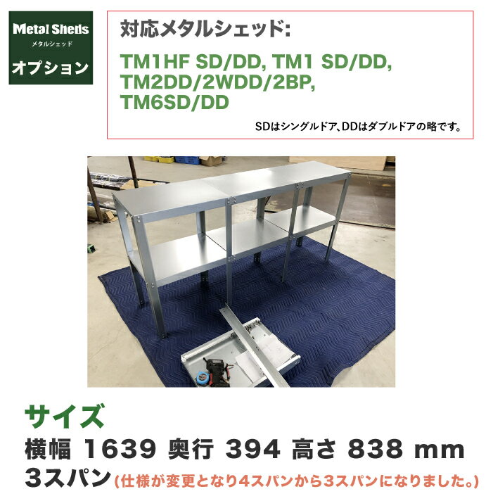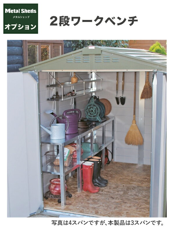 【クーポン有】メタルシェッド オプション 2段ワークベンチ 3スパン TMシリーズ用 屋外収納 TM1HF SD/DD TM1SD/DD TM2DD/2WDD/2BP TM6SD/DD 用 オプション シングルドア ダブルドア メタルラック 棚 ガーデナップ TRIMETALS ガーデン収納 倉庫 物置 カスタム ガレージ