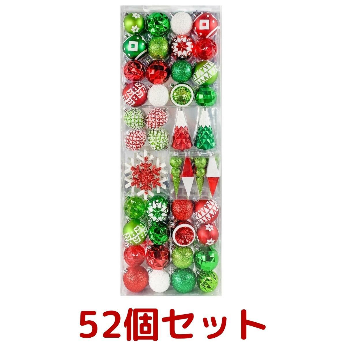 クリスマスオーナメント 52個セット レッド グリーン ホワイト クリスマス ツリー デコレーション 飾り 星 プレゼント オーナメント ボール 玉 鈴 冬 コストコ Costco