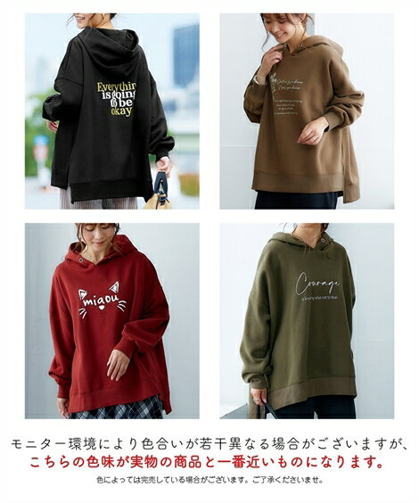 チュニック レディース 裏起毛 プリント パーカー 冬 カーキ/モカ/ワイン/黒 S/M/L ニッセン nissen