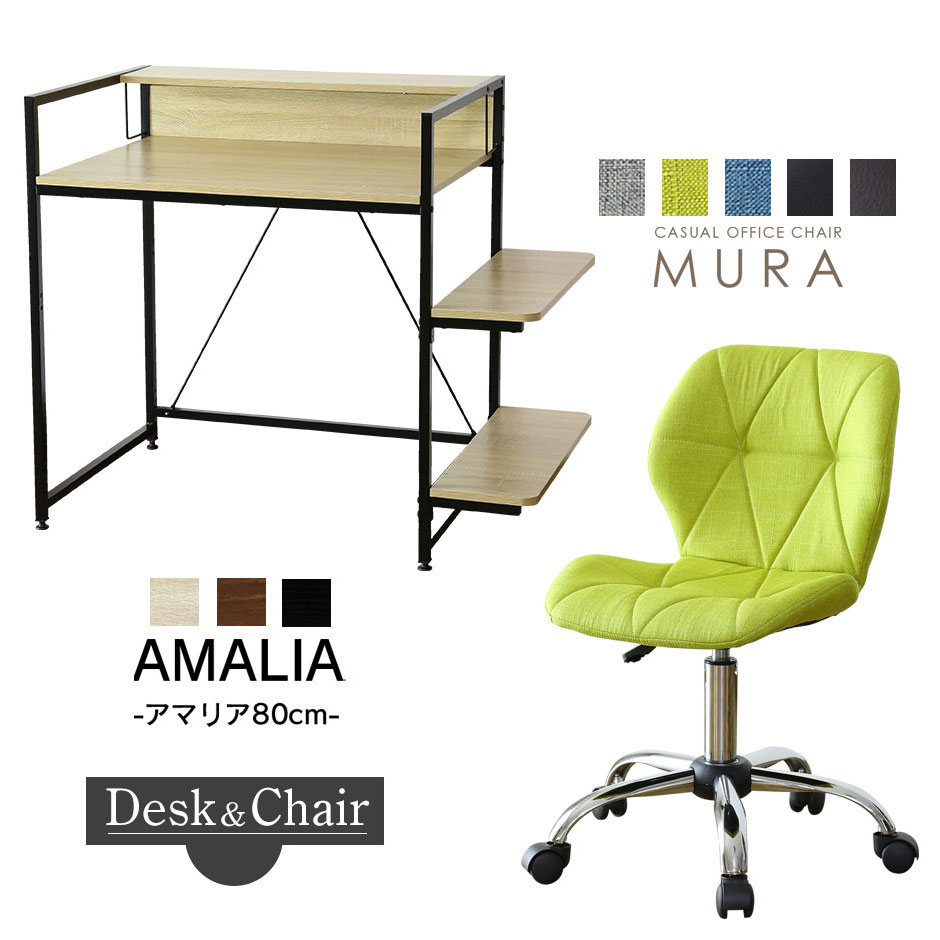パソコンデスク オフィスチェア セット デスク チェア 在宅 テレワーク ラック 書棚 デザイナー コンパクト おしゃれ 北欧 アマリア80cm ムーラ